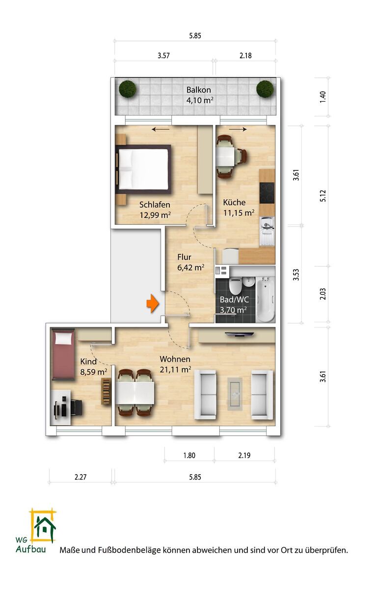 Türöffnungsrichtungen können zum Grundriss abweichen.
