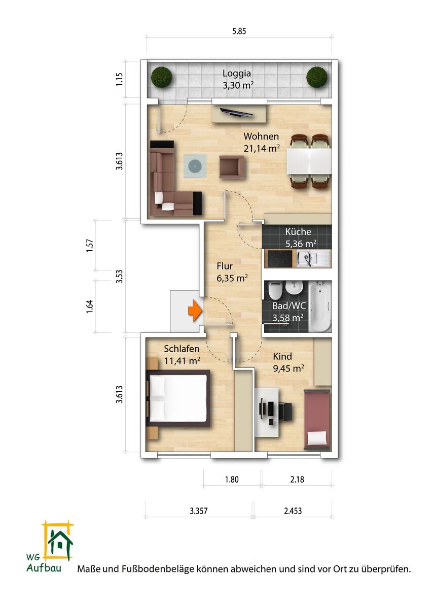 Türöffnungsrichtungen können zum Grundriss abweichen.